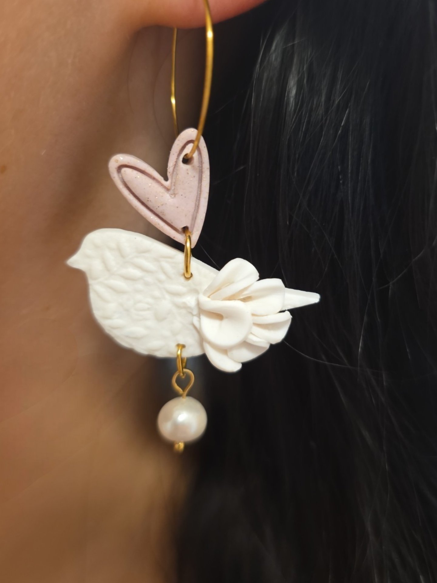 Ručno rađene naušnice od fimo mase – ultra lagane, udobne i idealne za cjelodnevno nošenje. Metalni dijelovi izrađeni su od nehrđajućeg čelika, što ih čini izdržljivima, vodootpornima i sigurnima za kožu.